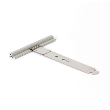 Pour installer l’attache tablier, vous devez glisser sur cette première lame, la réglette de l’attache qui est la partie rectangulaire. Ensuite, grâce à la souplesse de la pièce, vous insérez la partie métallique dans les lumières de l’axe (les ajoutions).
