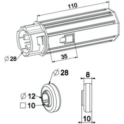 Embout D’axe Pour Tube Octogonal 40 Mm Crabot Femelle Avec Roulement