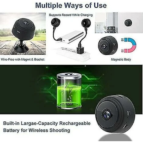 [Mini caméra] – Cette mini caméra est portable et de poche, ce qui la rend parfaite comme caméra de sécurité domestique sans fil ou comme caméra de surveillance pour bébé avec caméra pour enregistrer à la fois des photos instantanées et des vidéos sans attirer aucun attentif.