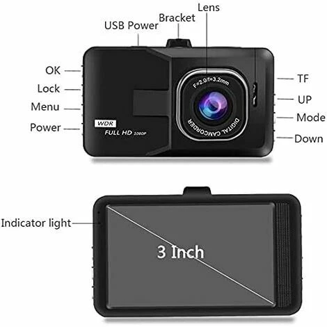 1080P HD et grand écran 3 pouces: la caméra de tableau de bord avec carte SD FHD 1920X1080P à 30 ips vidéo permet de capturer toutes les conditions routières et les détails des plaques d’immatriculation. Vous pouvez lire les plaques d’immatriculation sur les véhicules jusqu’à environ 9 mètres.