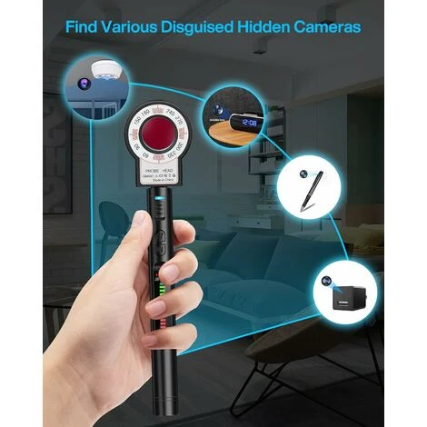 2. Efficace : ce détecteur de caméra combine un détecteur RF et un détecteur infrarouge pour faciliter la recherche de caméras cachées et de dispositifs d’écoute. Peu importe que les caméras cachées soient sans fil ou câblées, même si elles ont été éteintes.