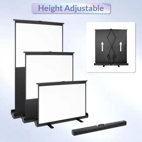 【Installation Facile】Sans besoin de percer ou d’endommager les murs et les plafonds ni d’installer un trépied, cet écran de projection est incroyablement facile à installer. En seulement 10 secondes, vous pouvez profiter d’une expérience sur grand écran en tirant simplement dessus pour l’ouvrir. L’écran dispose d’un design à double tige de soutien à pression gazeuse qui offre une élévation stable, vous permettant de l’arrêter à la hauteur appropriée pour une utilisation.
