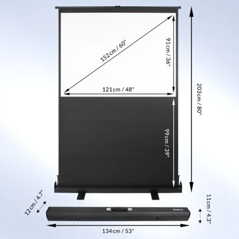【Format Et Taille Flexibles】Cet écran diagonal de 60 pouces offre un généreux espace de visionnement de 121 x 91 cm au format d’écran polyvalent 4:3. Il peut facilement être ajusté au format 16:9 en modifiant la hauteur de l’écran de projection. Le matériau entièrement noir élimine efficacement la pénétration lumineuse et sa compatibilité universelle le rend adapté à la plupart des projecteurs LED, LCD ou DLP disponibles sur le marché.