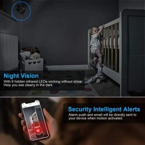 【Alertes avancées de détection de mouvement】 La caméra cachée sans fil enverra une notification push avec des images à votre téléphone une fois le mouvement détecté. Vous pouvez vous connecter à l’application pour voir ce qui se passe en temps réel et