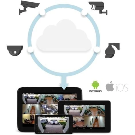 - ACCÈS DEPUIS UN TÉLÉPHONE CELLULAIRE : Port : 8000 ou accès via le nuage | Android : Application gratuite iVMS-4500 ou Hik-Connect | iOS (iPhone) : Application gratuite iVMS-4500 ou Hik-Connect