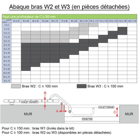 Bras permettant l’utilisation d’une motorisation WINEO pour une profondeur minimale de 100 mm.