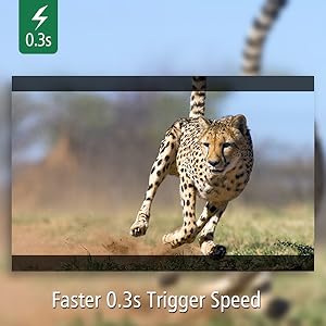 non incluse dans l’emballage) - Vitesse de déclenchement plus rapide de 0,3s – Une fois les mouvements détectés, la caméra de chasse se déclenchera instantanément en 0,3 seconde sans délai.Vous ne manquerez jamais aucun moment excitant, même de nuit. La distance de déclenchement
