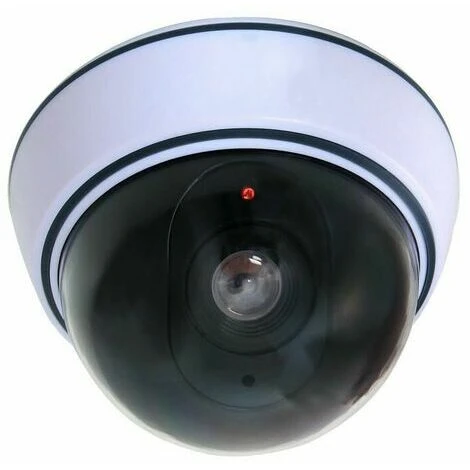 Prêt à l’emploi. Pas d’intallation ni d’entretien. Montage facile avec les chevilles et vis fournies. Diamètre : 12.5 cm. Hauteur du dôme : environ 10 cm – Matériau : plastique – Couleur : noir et blanc – La diode clignotante simule un projecteur