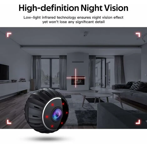 【Mini caméra Full HD Wifi 1080P】Résolution 1080P et objectif grand angle de 150°, une plus grande portée de vision et capture les détails clairement. Fonction avec vidéo, image, enregistrement en boucle, détecteur de mouvement, vision nocturne infrarouge,