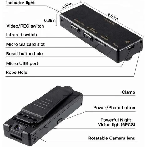 - Excellent Excellente mini caméra corporelle 1080P Il est facile à utiliser et caché partout où vous en avez besoin. La caméra corporelle dans cette minTaille est rare, lTaille (0.98in x 2.83in x 0.39in) vous pouvez porter cette caméra corporelle cachée portable sur la poche de votre chemise via un clip arrière, 1920 * 1080 @ 30fps et un objectif rotatif super grand angle à 130 degrés capture une vue plus grande pendant l’enregistrement.