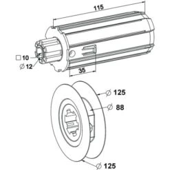 Embout Avec Poulie Ø 125 Mm Pour Tube ZF 54 Sur Téton Ø 12 Ou Carré 10 Mm
