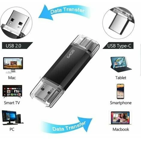 Fonction 2-en-1 Clé USB C: Clef usb c est dotée de double connecteurs, non seulement pour les appareils équipé d’une interface USB type-A, mais aussi pour smartphones, ou appareils équipé d’un port type-C.
