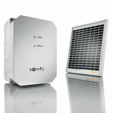 Kit d’alimentation solaire permettant de motoriser un portail ou une porte de garage en cas d’installation sans alimentation électrique de 230V à proximité. Le panneau photovoltaïque alimente un chargeur de batteries qui font fonctionner un moteur de portail ou de porte de garage Somfy avec les même PERFORMANCES qu’une alimentation classique 230V.