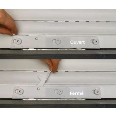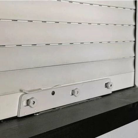 Verrou volet roulant de très haute sécurité anti-effraction Système anti soulèvement du volet roulant, ancrage de la lame finale à l’appui de fenêtre. Verrou volet roulant empêchant tout passage des mains ou d’outil entre le seuil et la lame finale du volet et interdit donc toute tentative d’arrachement et de déraillement du volet, pratique de cambriolage ultra courante. Sécurisation optimale du volet roulant contre l’intrusion par arrachement du volet, verrouillage et déverrouillage manuel par poignée. Grande facilité d’utilisation, facilité de pose : notice + gabarit de perçage + visserie inclus. Verrou volet roulant convenant à tous types de volets roulants, pour fenêtre, baie vitrée, porte fenêtre…. Attention aux recommandations de poses. Verrou volet roulant ultra solide, ancrage de la lame finale permettant de solidariser le volet à l’appui de fenêtre au au sol. Couleur : Blanc (Peut être repeint). Avantages produit : Système de très haute sécurité, fixe le volet roulant au sol, empêche tout arrachement et soulèvement du volet roulant. Installation du verrou de volet roulant anti pince Préconisations de pose : 1. Volet de fenêtre standard : Poser 1 verrou de volet roulant anti-pince au milieu du volet. 2. Volet de baie vitrée : Placer 1 verrou volet roulant anti-pince à 15 cm de chacune des 2 extrémités du volet afin de garantir la rigidité maximale que doit apporter le verrou volet roulant afin d’empêcher l’arrachement du volet. Côtés : Caractéristiques techniques du verrou de volet roulant AFBAT Serrure de volet pour tous types de volets roulants. 1 gâche en acier à fixer sur l’appui de fenêtre ou sur le montant de la fenêtre. 1 plaque avec vis soudées, invisibles de l’extérieur en acier. 1 verrou avec poignée en acier pour verrouillage et déverrouillage manuels.